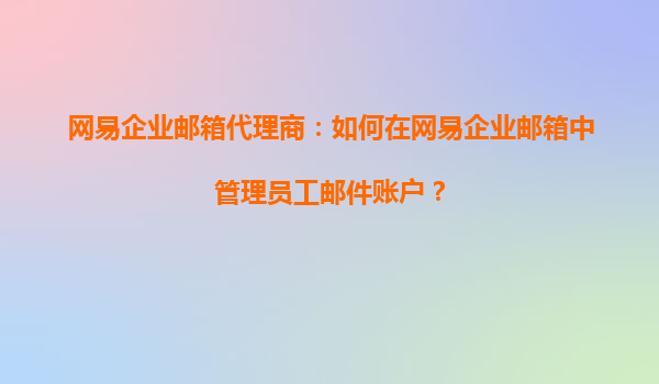 网易企业邮箱代理商指南:高效管理员工邮件账户 一、网易企业邮箱的核心优势 作为国内领先的企业级邮箱服务商,网易企业邮箱凭借稳定的系统架构、强大的安全防护和人性化管理功能,成为超过80万家企业...