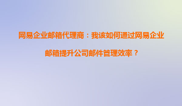 2025-09-16如何通过网易企业邮箱提升公司邮件管理效率?——网易企业邮箱代理商的解决方案 一、企业邮件管理的重要性 在数字化办公时代,企业邮箱不仅是沟通工具,更是信息流转的核心载体。据统计,职场人平均...