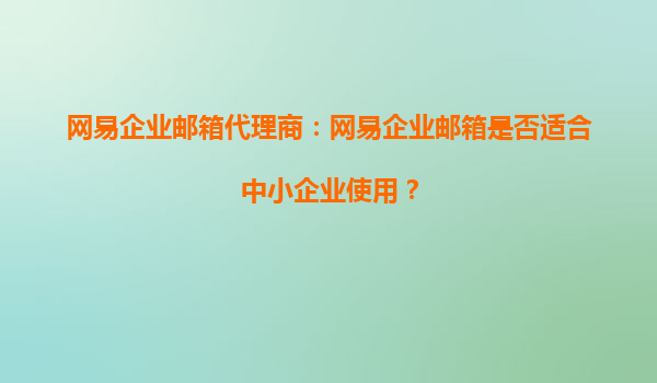 网易企业邮箱代理商:网易企业邮箱是否适合中小企业使用? 一、网易企业邮箱的核心优势解析 作为国内领先的企业级邮箱服务商,网易企业邮箱凭借以下核心功能成为中小企业的优先选择: 专业域名定制-...