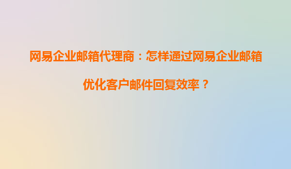 2025-08-29网易企业邮箱代理商:怎样通过网易企业邮箱优化客户邮件回复效率? 在当今快节奏的商业环境中,高效的邮件沟通是企业成功的关键因素之一。作为专业的网易企业邮箱代理商,我们深知如何利用网易企业邮箱的强大...