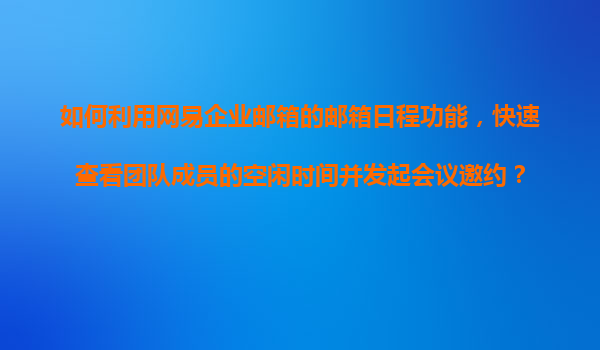 2025-11-08如何利用网易企业邮箱的邮箱日程功能,快速查看团队成员的空闲时间并发起会议邀约? 一、网易企业邮箱日程功能的核心价值 在团队协作中,高效安排会议是提升工作效率的关键。网易企业邮箱的日程功能,...