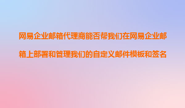 2025-11-08网易企业邮箱代理商:助力企业高效部署与管理自定义邮件模板和签名 引言 在现代企业沟通中,电子邮件的专业性和规范性直接影响企业形象和业务效率。统一的自定义邮件模板和签名不仅能够提...