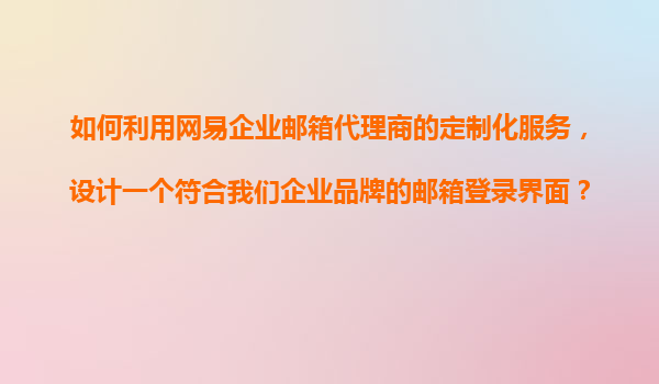 2025-11-05如何利用网易企业邮箱代理商的定制化服务,设计符合企业品牌的邮箱登录界面? 一、网易企业邮箱的核心优势 在探讨定制化登录界面之前,首先需要明确选择网易企...