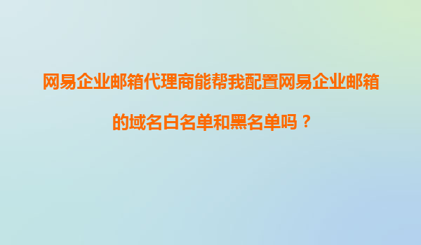 2025-11-19网易企业邮箱代理商能帮我配置网易企业邮箱的域名白名单和黑名单吗? 随着企业信息化建设的不断深入,企业邮箱已成为企业日常办公不可或缺的一部分。网易企业邮箱以其强大的功能、稳定的性能和优质的售后服务赢...