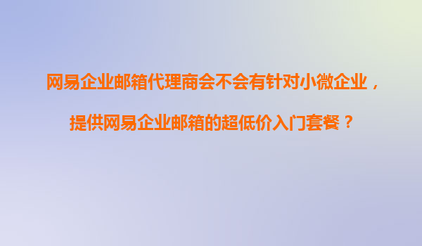 2025-11-19网易企业邮箱代理商是否会为小微企业提供超低价入门套餐? 1.网易企业邮箱的市场定位与代理商体系 网易企业邮箱是国内领先的企业级邮件服务提供商,凭借其稳定、安全、高效的特点,深受广大企业...