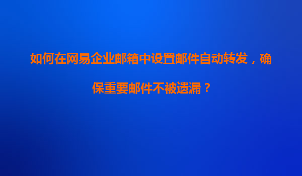 2025-11-19如何在网易企业邮箱中设置邮件自动转发,确保重要邮件不被遗漏? 在现代企业中,高效沟通是成功的关键之一。电子邮件作为最常用的沟通工具之一,其管理和使用效率直接影响企业的运营效率。网易企业邮箱作...