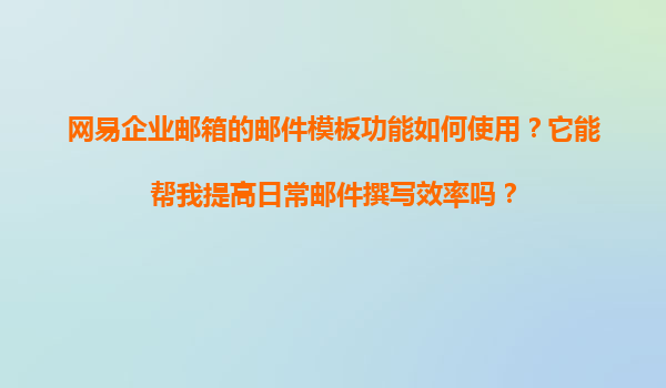 2025-11-19网易企业邮箱邮件模板功能简介 网易企业邮箱作为国内领先的企业级邮箱服务提供商,不仅提供稳定高效的邮件收发功能,还内置了强大的邮件模板功能。邮件模板功能允许用户预先设置好常用的邮件格式和内容,在需要时快...