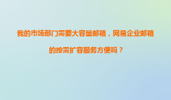 2025-11-19市场部门为何需要大容量邮箱? 在数字化营销时代,市场部门每天需要处理海量的客户沟通、推广素材发送以及数据分析报告。普通邮箱的容量限制可能导致重要文件无法存储或邮件频繁清理的困扰。网易企业邮箱的按需...