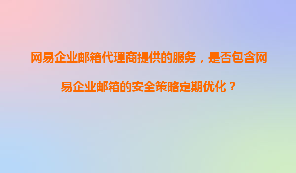 2025-11-19网易企业邮箱代理商服务解析:安全策略优化是否包含在内? 一、网易企业邮箱的核心优势 作为国内领先的企业邮箱服务提供商,网易企业邮箱以稳定的服务架构和全面的安全防护体系著称,其核心优势包括: ...