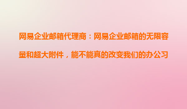 2025-10-23网易企业邮箱代理商:网易企业邮箱的无限容量和超大附件,能否真正改变办公习惯? 引言 在数字化办公时代,企业邮箱已成为日常沟通和文件传输的核心工具。传统邮箱常因容量限制、附件大小等问题影响工作效率...