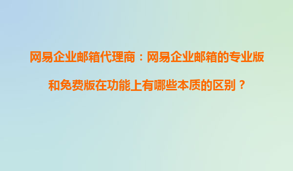 2025-10-23网易企业邮箱代理商:网易企业邮箱的专业版和免费版在功能上有哪些本质的区别? 一、网易企业邮箱简介 网易企业邮箱是国内领先的企业邮箱服务商,依托网易22年的邮件运营经验和大数据技术,为企业提供...