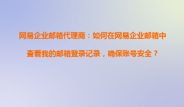 2025-10-23网易企业邮箱代理商:如何在网易企业邮箱中查看我的邮箱登录记录,确保账号安全? 在当今数字化办公环境中,企业邮箱不仅是沟通工具,更是公司数据安全的第一道防线。作为国内领先的企业邮箱服务商,网易企...