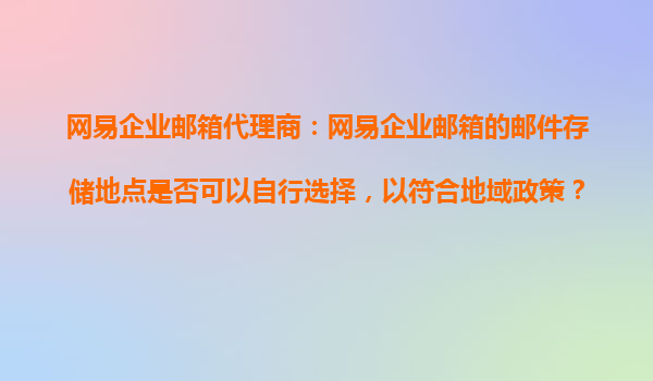 2025-10-21网易企业邮箱代理商:网易企业邮箱的邮件存储地点是否可以自行选择,以符合地域政策? 一、网易企业邮箱的核心优势 网易企业邮箱作为国内领先的企业级邮件服务提供商,凭借其稳定、安全、高效的特性,...