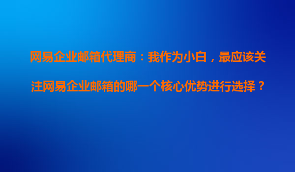 2025-10-22网易企业邮箱代理商:我作为小白,最应该关注网易企业邮箱的哪一个核心优势进行选择? 作者:企业邮箱探索者 作为初次接触企业邮箱的小白,面对众多品牌和功能,如何选择最适合自己的企业邮箱服务?网...