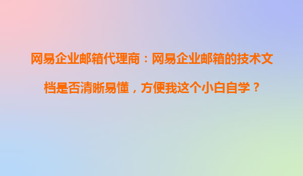 2025-10-21网易企业邮箱代理商:网易企业邮箱的技术文档是否清晰易懂,方便我这个小白自学? 一、网易企业邮箱的技术文档设计特点 网易企业邮箱作为国内领先的企业级邮件服务提供商,其技术文档的编写充分考虑了不同...