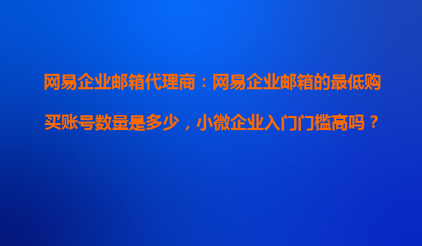 2025-10-21网易企业邮箱代理商:网易企业邮箱的最低购买账号数量是多少,小微企业入门门槛高吗? 一、网易企业邮箱的最低购买账号数量 作为国内领先的企业邮箱服务提供商之一,网易企业邮箱以其稳定性和安全性广...