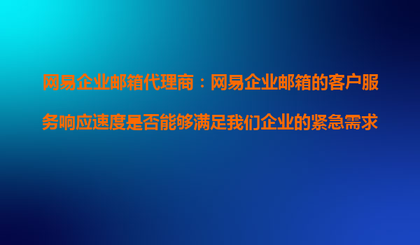 2025-10-21网易企业邮箱代理商:网易企业邮箱的客户服务响应速度是否能够满足我们企业的紧急需求? 一、网易企业邮箱的客户服务体系概述 网易企业邮箱作为国内领先的企业通信服务提供商,其客户服务体系涵盖...