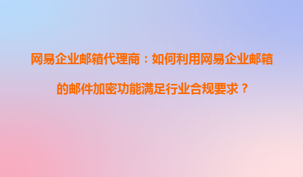 2025-10-21网易企业邮箱代理商:如何利用网易企业邮箱的邮件加密功能满足行业合规要求 一、行业合规对邮件安全的核心要求 随着《网络安全法》《数据安全法》等法规的落地,金融、医疗、教育等行业对邮件通信提出...