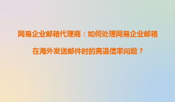 2025-10-21网易企业邮箱代理商:如何处理网易企业邮箱在海外发送邮件时的高退信率问题? 一、网易企业邮箱的核心优势 网易企业邮箱作为国内领先的企业级邮件服务商,拥有以下显著优势: ...