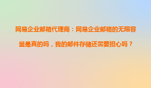 网易企业邮箱代理商:网易企业邮箱的无限容量是真的吗,我的邮件存储还需要担心吗? 在企业数字化办公的时代,邮箱作为核心沟通工具之一,其稳定性和存储容量直接关系到企业的运营效率。网易企业邮箱作为国...