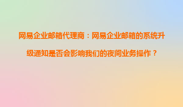 2025-10-19网易企业邮箱代理商:网易企业邮箱的系统升级通知是否会影响我们的夜间业务操作? 网易企业邮箱作为国内领先的企业通信解决方案提供商,一直致力于为企业用户提供稳定、安全、高效的企业邮箱服务。近...