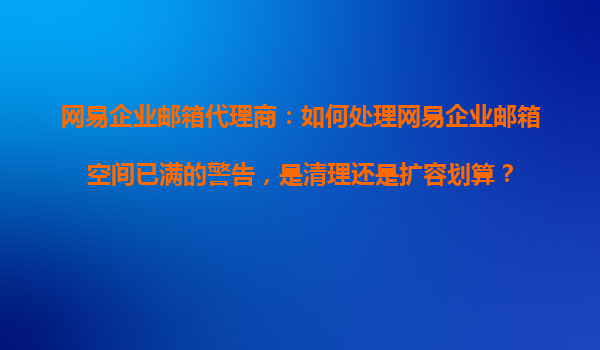 2025-10-19网易企业邮箱代理商:如何处理网易企业邮箱空间已满的警告,是清理还是扩容划算? 在数字化办公时代,企业邮箱已成为高效沟通的重要工具。网易企业邮箱凭借其稳定的性能、丰富的功能和强大的安全保障,成为...