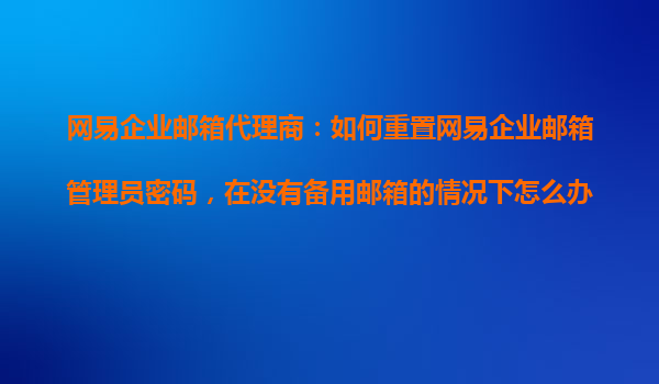 2025-10-19网易企业邮箱代理商:如何重置网易企业邮箱管理员密码,在没有备用邮箱的情况下怎么办? 网易企业邮箱的优势 网易企业邮箱作为国内领先的企业邮件服务提供商,凭借其稳定、安全、高效的特点,赢得了众多...