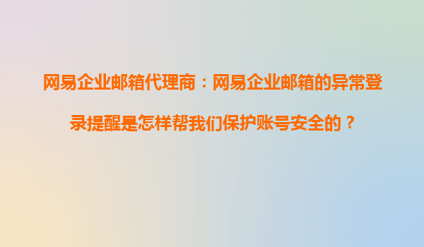 2025-10-16网易企业邮箱代理商:网易企业邮箱的异常登录提醒是怎样帮我们保护账号安全的? 一、异常登录提醒的核心功能 网易企业邮箱通过实时监测用户登录行为,对以下异常情况触...