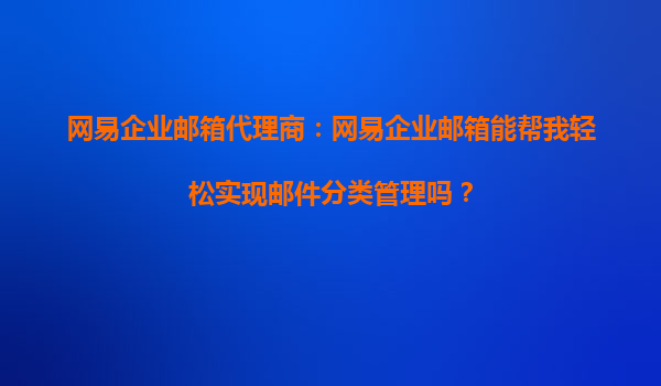 2025-10-16网易企业邮箱如何助力企业高效实现邮件分类管理 智能化分类标签,让邮件管理一目了然 网易企业邮箱提供强大的智能化分类标签功能,可根据邮件内容、发件人、主题等关键信息自动为邮件打上分类标签。用...