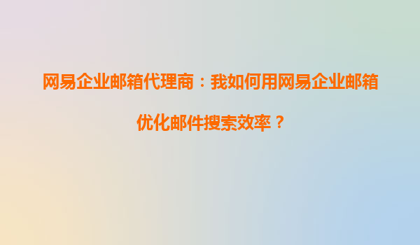 2025-10-15网易企业邮箱代理商:如何用网易企业邮箱优化邮件搜索效率? 引言 在快节奏的现代商业环境中,高效沟通是企业成功的关键之一。邮件作为最常用的商务沟通工具之一,其管理效率直接影响团队协作和业务推...
