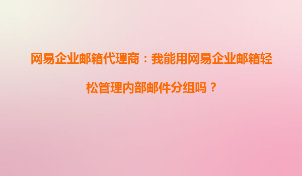 2025-10-16网易企业邮箱代理商解答:轻松管理内部邮件分组的秘诀 在现代企业管理中,高效的内部沟通是提升工作效率的关键。网易企业邮箱作为国内领先的企业邮箱服务提供商,凭借其强大的功能和易用性,成为众多企业的首选。许...