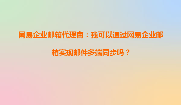 网易企业邮箱代理商:我可以通过网易企业邮箱实现邮件多端同步吗? 在现代商务环境中,高效的邮件服务是企业沟通不可或缺的一部分。随着移动办公的普及,多端同步功能成为企业邮箱的重要需求之一。网...