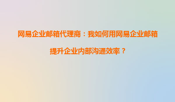 2025-10-14网易企业邮箱代理商:我如何通过网易企业邮箱提升客户邮件响应速度? 在现代商业沟通中,邮件的响应速度直接影响客户满意度和业务效率。作为网易企业邮箱的代理商,我深刻体会到网易企业邮箱在提升客...