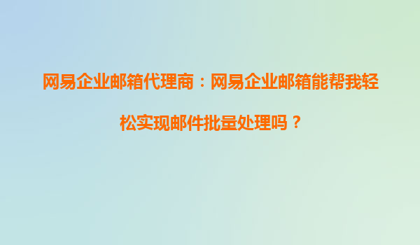2025-10-13网易企业邮箱代理商:网易企业邮箱能帮我轻松实现邮件批量处理吗? 一、企业邮件的批量处理需求 在快节奏的现代商业环境中,高效沟通是企业成功的关键。邮件作...