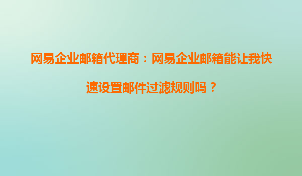 2025-10-13网易企业邮箱代理商详解:网易企业邮箱能让我快速设置邮件过滤规则吗? 一、网易企业邮箱的邮件过滤功能概述 作为国内领先的企业级邮箱服务商,网易企业邮箱一直以其强大的功能和稳定的性能著称。其中,邮...