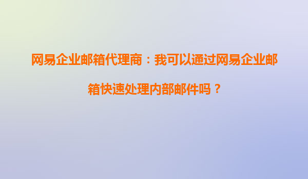 2025-10-13网易企业邮箱代理商:我可以通过网易企业邮箱快速处理内部邮件吗? 一、网易企业邮箱的核心优势 网易企业邮箱作为国内领先的企业级邮件服务解决方案,凭借其高性能、安全性及丰富的功能,已成为众多企...