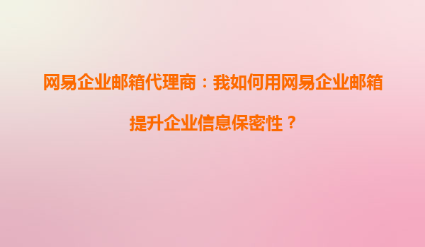 2025-10-13网易企业邮箱代理商:我如何用网易企业邮箱提升企业信息保密性? 引言 在数字化时代,企业信息安全成为重中之重。作为网易企业邮箱的代理商,我们深知信息安全对企业的重要性。本文将详细介绍如何...