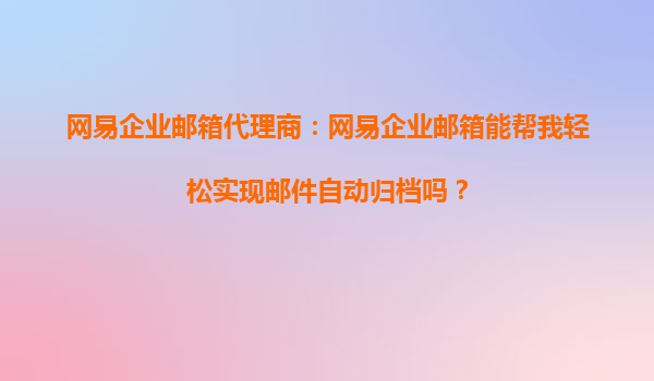 2025-10-13网易企业邮箱代理商:网易企业邮箱能轻松实现邮件自动归档吗? 一、邮件自动归档的重要性 在现代企业管理中,邮件作为重要的沟通工具,承载着大量的业务信息。随着时间的推移,邮件数量会不断累积...