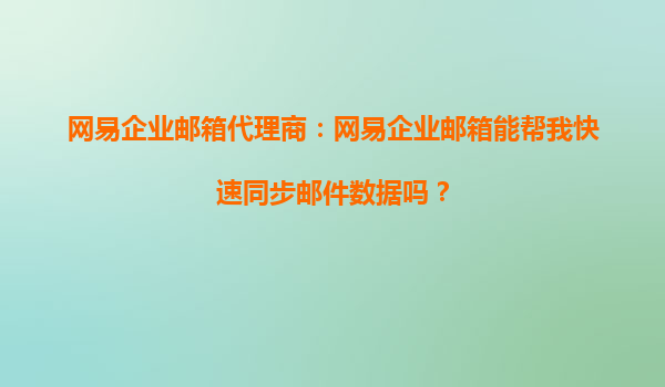 2025-10-12网易企业邮箱代理商:网易企业邮箱能帮我快速同步邮件数据吗? 在当今快节奏的商业环境中,高效、稳定的企业邮箱服务是企业沟通和协作的重要工具。作为国内领先的企业邮箱服务提供商,网易企业邮箱凭借其强大的...