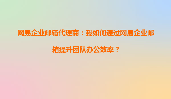 网易企业邮箱代理商:我如何通过网易企业邮箱提升团队办公效率? 在数字化转型的浪潮中,高效、安全的邮件系统已成为企业办公的核心工具。作为国内领先的企业邮箱服务提供商,网易企业邮箱凭借其稳定、安...