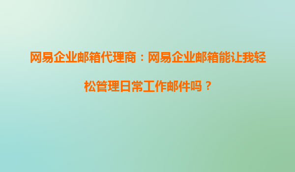 2025-10-10网易企业邮箱代理商:网易企业邮箱能让我轻松管理日常工作邮件吗? 一、引言:企业邮箱的日常管理痛点 在现代办公场景中,邮件沟通仍是企业内外协作的核心工具之一。然而,传统邮箱常面...