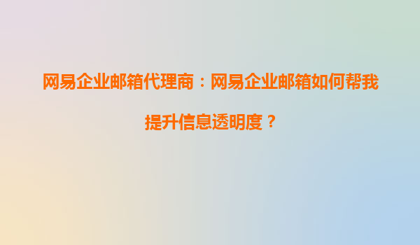 2025-09-28网易企业邮箱如何助力企业提升信息透明度 在数字化时代,信息透明度是企业高效运营和内部协作的核心要素之一。网易企业邮箱作为国内领先的企业通信解决方案,凭借其强大的功能与稳定的服务,能够帮助企业显著提...