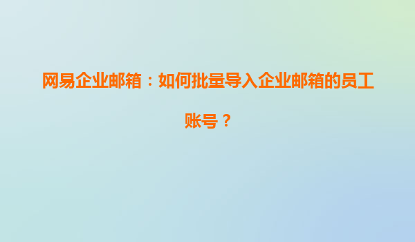 随着公司规模的不断扩大,企业内部的邮件管理也变得越来越复杂。为了提高工作效率,批量导入员工账号成为了很多企业管理员的重要需求。网易企业邮箱作为一款广受欢迎的企业级邮箱解决方案,不仅提供了高效、安全的邮箱服务,还支持批量导入员工邮箱账号,极大地简化了管理员的操作流程。本文将为大家详细介绍如何批量导入网易企业邮箱的员工账号,并结合网易企业邮箱和其代理商的优势,为企业管理员提供实用的建议。