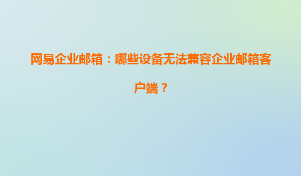 网易企业邮箱作为国内领先的企业级邮箱服务平台,已为众多企业提供了高效、稳定的邮件通讯解决方案。随着科技的发展,越来越多的企业开始选择使用企业邮箱客户端来管理工作邮件。然而,在使用网易企业邮箱客户端时,部分设备和操作系统可能存在兼容性问题,本文将针对哪些设备无法兼容网易企业邮箱客户端做出详细解析,并结合网易企业邮箱和其代理商的优势,为您提供最优化的使用建议。