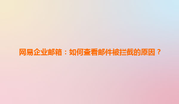 网易企业邮箱:如何查看邮件被拦截的原因