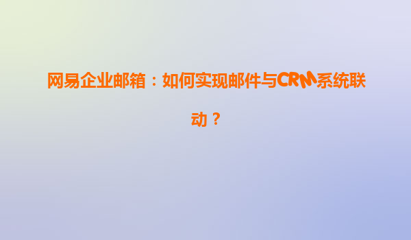 网易企业邮箱:如何实现邮件与CRM系统联动?