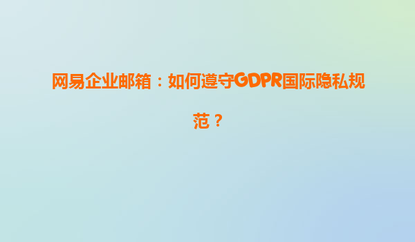 网易企业邮箱:如何遵守GDpr国际隐私规范?