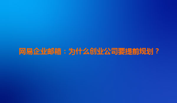 网易企业邮箱:为什么创业公司要提前规划?