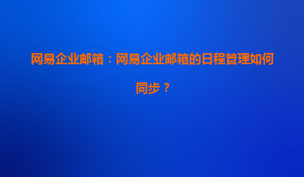 网易企业邮箱:网易企业邮箱的日程管理如何同步?
