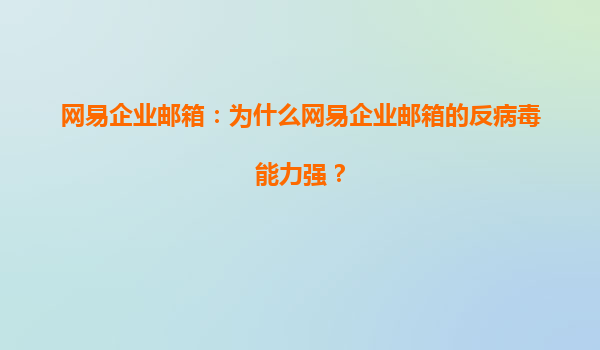 网易企业邮箱:为什么网易企业邮箱的反病毒能力强?